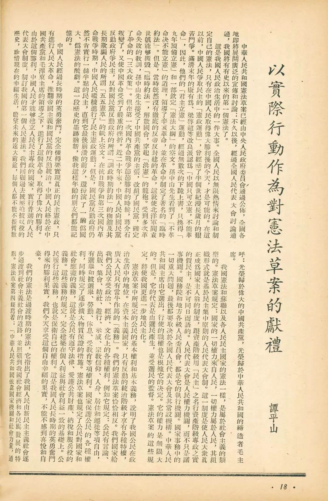 谭平山是克己奉公的典范。新中国成立初期,为了渡过经济难关,决定发行公债。谭平山不仅在《人民日报》上发表《拥护发行人民胜利折实公债》一文支持发行折实公债以解决暂时困难,而且以实际行动购买人民胜利折实公债。在他的影响下,夫人孙荪荃在谭平山去世后把北京的房产无偿捐献给了国家。 1954年6月,在第一届全国人民代表大会召开前夕,谭平山受邀参与我国第一部宪法草案的讨论,他深入地学习和宣传,为能亲身参与到这项人民政治生活的大事中而感到自豪,满怀激情号召大家“让我们以欢欣鼓舞的心情迎接宪法草案的公布,并以自己的实际行动作为对宪法草案的献礼。” 1956年4月2日0时20分,谭平山因病在北京逝世。他一生真诚地信任着党,依靠着党的领导。