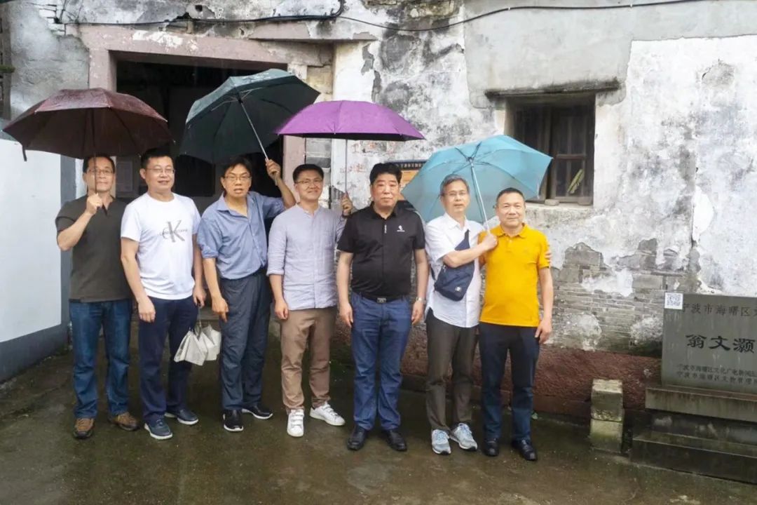 6月10日,《翁文灏与宁波》编辑组在甬成员冒雨考察位于海曙区高桥镇石塘村的民革中央原常委翁文灏先生故居。早前,编辑组在甬成员与翁文灏在甬的唯一孙子翁维龙先生交流了本书编辑的相关线索。此次考察,与石塘村曹春富书记深入交流了合作出版事宜并向该村赠送了民革宁波市委会组织出版的《罗惠侨与张家瀛村》。